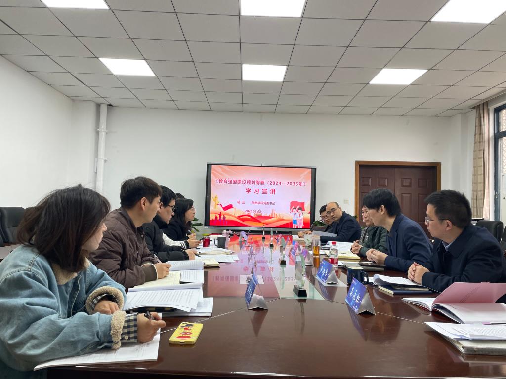 为进一步领会建设教育强国精神,全面贯彻习近平总书记关于教育的重要论述,3月12日上午,必一运动(官方网站)B·Sport-权威运动资讯网站党委理论学习中心组在集贤楼524会议室开展集中学习会。学习会由物电学院党委书记杨云主持,学院党委理论学习中心组全体成员参加。