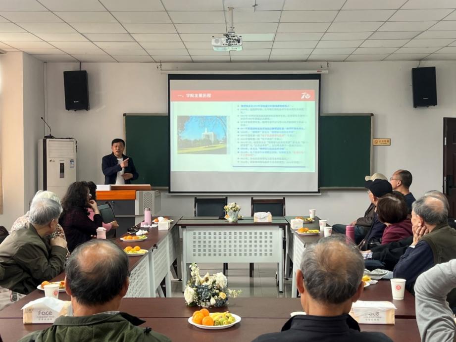 杨云向离退休老教师们详细介绍了近年来学院在学科建设、人才培养、科研创新、师资队伍等方面的成绩以及未来发展规划。杨云指出,物电学院始终坚持以物理学(师范)教育和电子、光电信息工程发展相结合的导向,持续巩固两大类学科的相互支撑、协同发展;将继续以开放的态度吸引国内外先进人才,努力创建更具创新与活力的师资人才队伍。