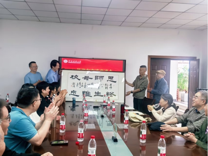 在温馨的座谈交流中,校友代表郑重向学院赠予镌刻着“恩师母校,终生难忘”字样的纪念牌匾。这八个字凝聚了81级全体校友四十年来对母校培育之恩的深深感激,对师长教诲之情的永恒铭记。这份珍贵的礼物,不仅是对过往师生情谊的最好见证,更是连接校友与母校的深厚情感纽带。
