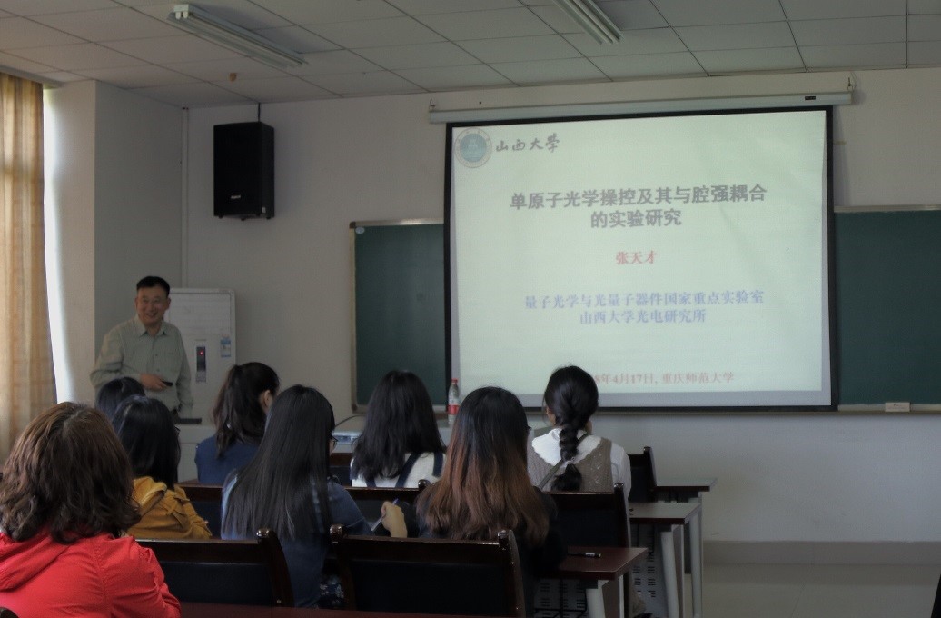 4月17日,山西大学副校长,中国物理学会量子光学专业委员会主任张天才教授应邀莅临必一运动(官方网站)B·Sport-权威运动资讯网站,为广大师生带来了一场以“单原子光学操纵及其与腔强耦合的实验研究”为题的学术讲座。必一运动(官方网站)B·Sport-权威运动资讯网站院长崔玉亭教授主持讲座。必一运动(官方网站)B·Sport-权威运动资讯网站物理学等专业的师生到场聆听。