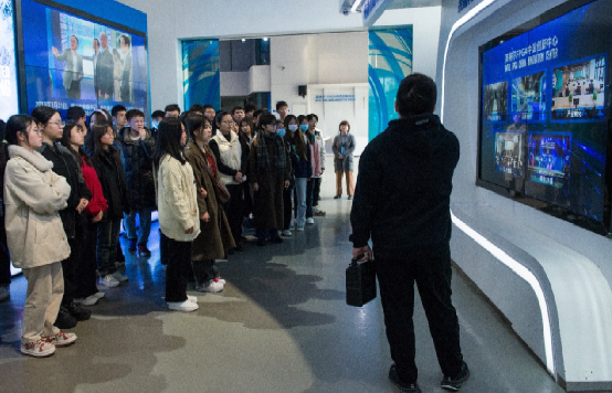接着解说员带领同学参观了创新中心展厅。面对设计精良的芯片,丰富的实训项目展示成果,同学们聚精会神,对复杂的FPGA有了更进一步的了解。