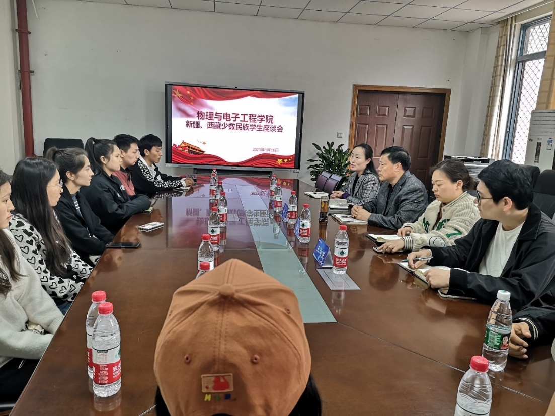 会上,曾艳副书记首先对全体与会同学表示了慰问。物电学院历来很重视少数民族学生的培养,去年线上教学时间较长,给新疆、西藏少数民族同学的学习带来了诸多困难,她鼓励同学们踊跃提出学业、生活上遇到的困难,学院将全力解决。与会同学纷纷发言,感谢学院关怀、同学关心,介绍了自己在学院的成长和收获。针对同学们提出的在专业课程学习、师范生认证等方面问题,曾艳副书记表示将积极协调任课教师和教学管理部门及时解决,并将组织已毕业的优秀少数民族学长学姐与同学们做交流,帮助同学们顺利完成学业。会议现场气氛轻松,笑声不断。