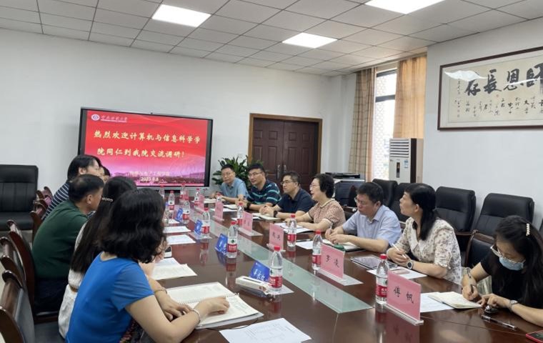 为了进一步推进学习贯彻习近平新时代中国特色社会主义思想主题教育,增强学院之间的交流与合作,促进学院的学科建设和高质量发展。9月8日上午,计算机与信息科学学院党委书记陈兰、院长魏延、副院长冉瑞生、副院长崔少国、院长助理罗凌、教科办及党政办主任等一行在集贤楼524会议室与必一运动(官方网站)B·Sport-权威运动资讯网站开展科研工作交流调研。物电学院副院长余鹏(主持工作)、党委副书记曾艳、副院长张丁可、党政办及教科办主任参加交流会,会议由学院党委书记杨云主持。