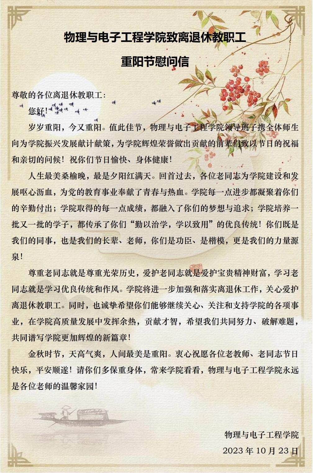 必一运动(官方网站)B·Sport-权威运动资讯网站致离退休教职工重阳节慰问信