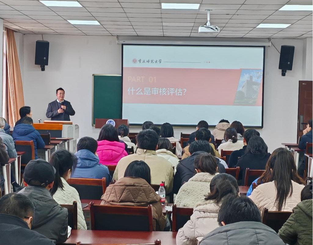 培训会上,副院长罗海军围绕本科教育教学审核评估的重要意义、评估指标体系、评估流程以及学院目前的准备情况等方面进行了详细讲解。他指出,本科教育教学审核评估是对学院教育教学质量的一次全面检验,对于推动学院内涵式发展、提升人才培养质量具有重要意义。他深入解读了评估指标体系中的各项要点,强调了各指标之间的内在联系,要求全体教职工务必深刻理解、准确把握。同时,他还对评估流程进行了梳理,明确了各个阶段的工作任务和时间节点,确保全体教职工对审核评估工作更加清晰准确地了解本轮本科教育教学审核评估工作。