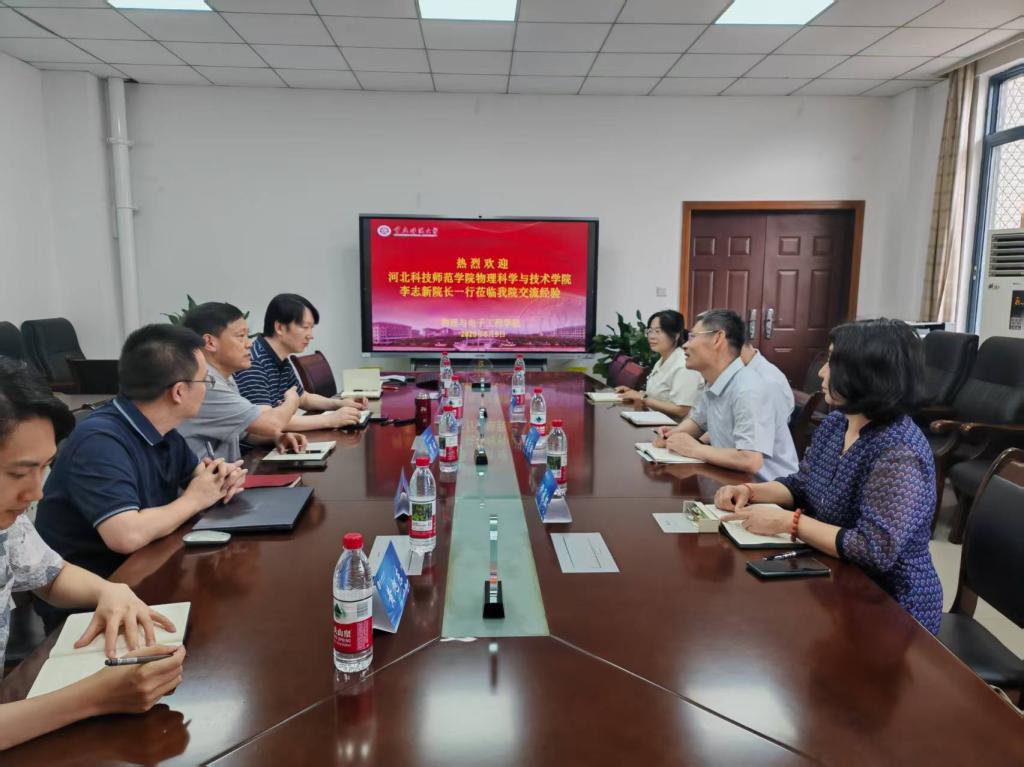 5月9日,河北科技师范学院物理科学与技术学院李志新院长一行莅临必一运动(官方网站)B·Sport-权威运动资讯网站集贤楼524会议室,就师范专业认证整改、专业硕士点建设等工作开展交流学习。学院党委书记杨云、院长余鹏、副院长罗海军及教师代表李万俊、黄旭东出席了座谈会。