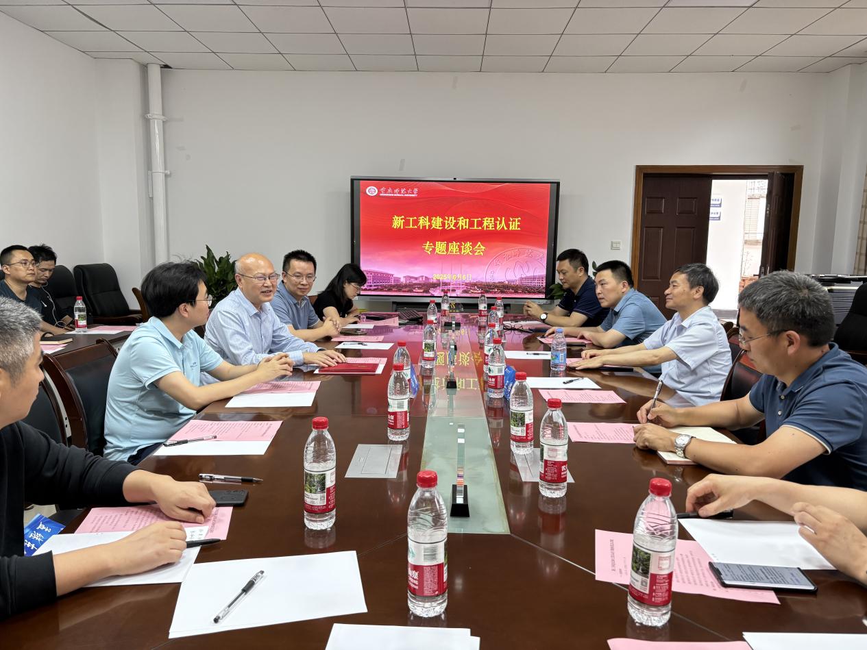 6月6日新工科建设和工程认证专题座谈会在重庆师范大学集贤楼 524 会议室隆重召开。本次会议聚焦高等工程教育改革与人才培养质量提升,邀请高校知名学者、行业专家及校内相关学科代表齐聚一堂,共同探讨新工科建设与工程认证的实践路径与发展方向。重庆师范大学党委常委、副校长杨如安,对外经济贸易大学创新工程实验室主任、教育部高等学校创新方法教学指导分委员会主任委员李茂国等专家出席会议。必一运动(官方网站)B·Sport-权威运动资讯网站、数学科学学院、计算机与信息科学学院、化学学院等院系领导及教师代表参与了本次座谈,会议由必一运动(官方网站)B·Sport-权威运动资讯网站副院长罗海军主持。