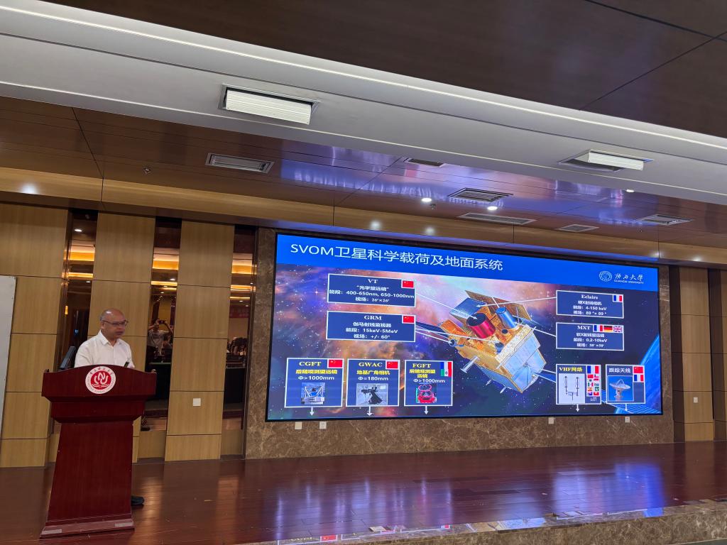 梁恩维教授深入浅出地介绍了大质量恒星塌缩、双致密天体并合过程新生黑洞和中子星等致密天体,这些极端天体过程和新生致密天体产生伽玛射线暴及其余辉、超新星、干新星等相关电磁辐射暂现源和引力波辐射,并分享了中法合作SVOM卫星以及国际其它多信使观测设备对这些暂现源的观测和理论研究进展,展望了中国在该领域的重大科学计划,包括SVOM卫星、中国空间站巡天望远镜(CSST)、爱因斯坦探针(EP)卫星等项目的科学潜力,指出中国正迎来在该前沿领域的重大发展机遇。