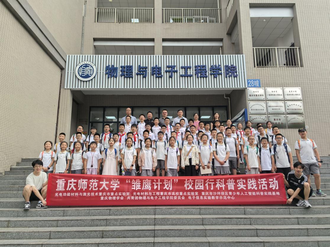 2025年6月26日,必一运动(官方网站)B·Sport-权威运动资讯网站举办“雏鹰计划”校园行科普实践活动,来自重庆两江新区重光小学、重庆市大渡口区钰鑫小学的学生参与,开启奇妙科学之旅,激发小学生科学兴趣,普及科学知识。本次活动由光电功能材料与激光技术重庆市重点实验室、光电材料与工程重庆市高校重点实验室、重庆市沙坪坝区人工智能科普实践基地、重庆物理学会、电子信息实验教学示范中心、共青团必一运动(官方网站)B·Sport-权威运动资讯网站委员会联合承办。