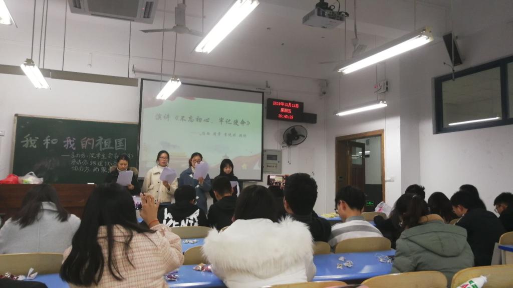 物理协会在团日活动中开展了《我和我的祖国》主题演讲,勉励各团员青年要用自身的行动诠释了当代青年无私奉献、锐意进取的时代精神和报效祖国、服务人民。书画协会四名协会成员为同学带来了题为《不忘初心,牢记使命》的演讲,表达了坚定做新时代青年的决心,激励同学们不忘初心、牢记使命,用青春的力量为社会做出贡献。