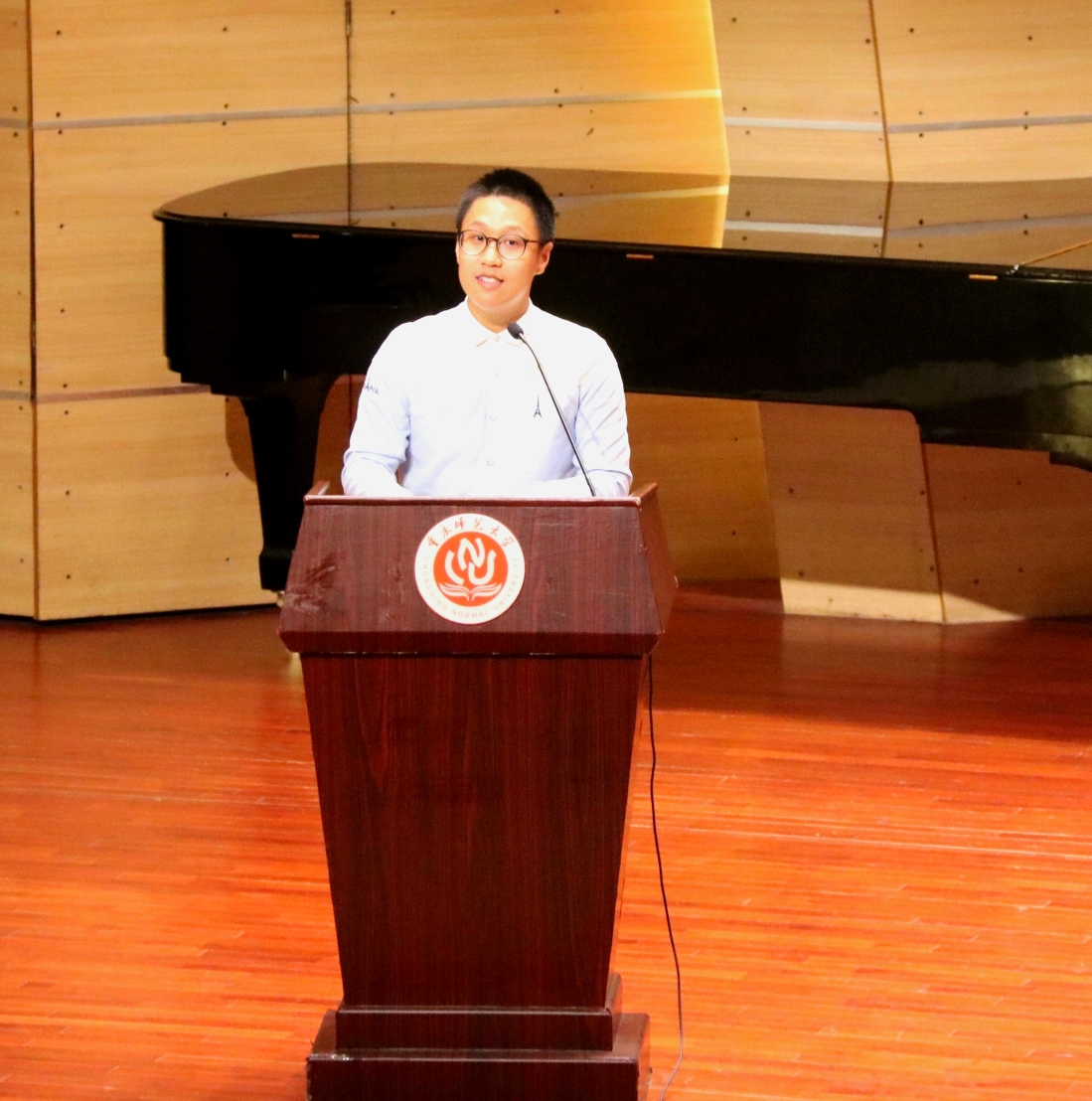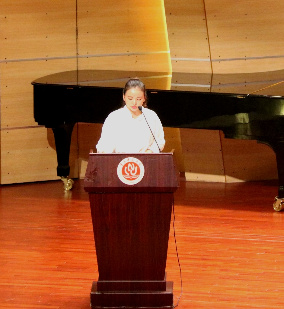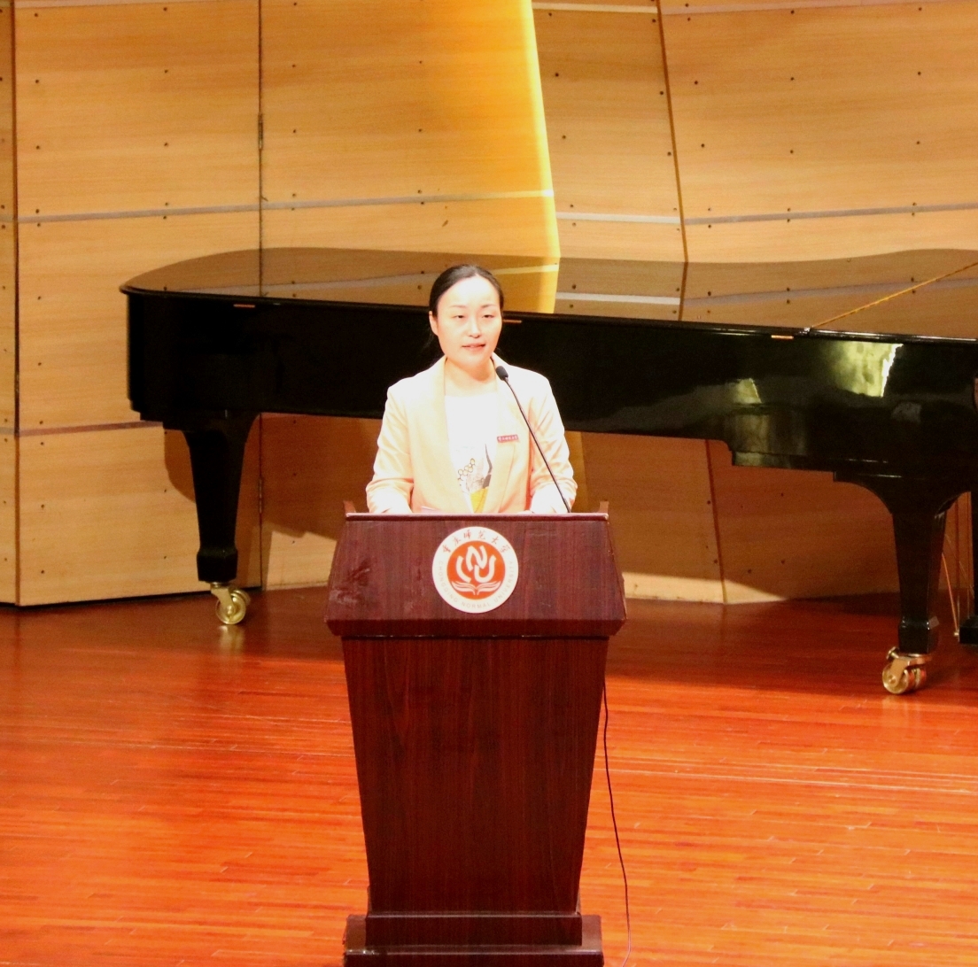 随后,新生代表王笑然同学在表达了自己对大学生活的期待的同时号召了同学们脚踏实地、勤奋学习,在面对来临的新时代时勇敢肩负起新时代的重担。最后,院长崔玉亭教授上台讲话。