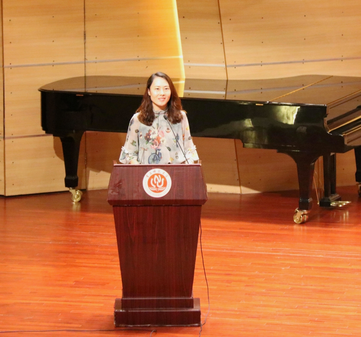 新生开学典礼在大家的期待下拉开了序幕。首先,学院教师代表张丁可教授上台致辞。张丁可教授和同学们聊了“珍惜”这个话题,她表示希望同学们能够珍惜现有的学习时间与机会,珍惜物电学院、爱上物电学院,珍惜健康,养成良好的习惯,保持健康的体魄,同时要珍惜缘分,珍惜师生情、同学情与校友情。