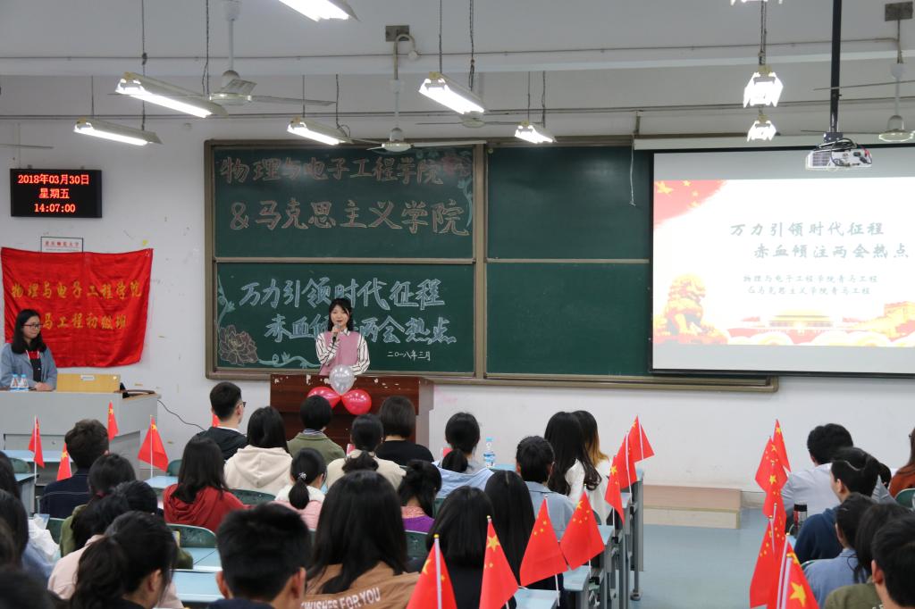 作为新时代的大学生, 应该具备深刻的思想认识和强烈的社会责任感,大学生中青马工程成员更需要培养自身的思辨能力,加强政治理论修养,发挥先锋模范作用,与时俱进。因此,必一运动(官方网站)B·Sport-权威运动资讯网站与马克思主义学院于2018年3月30日在弘德楼15102联合举办“万力引领时代征程,热血倾注两会热点”主题活动。