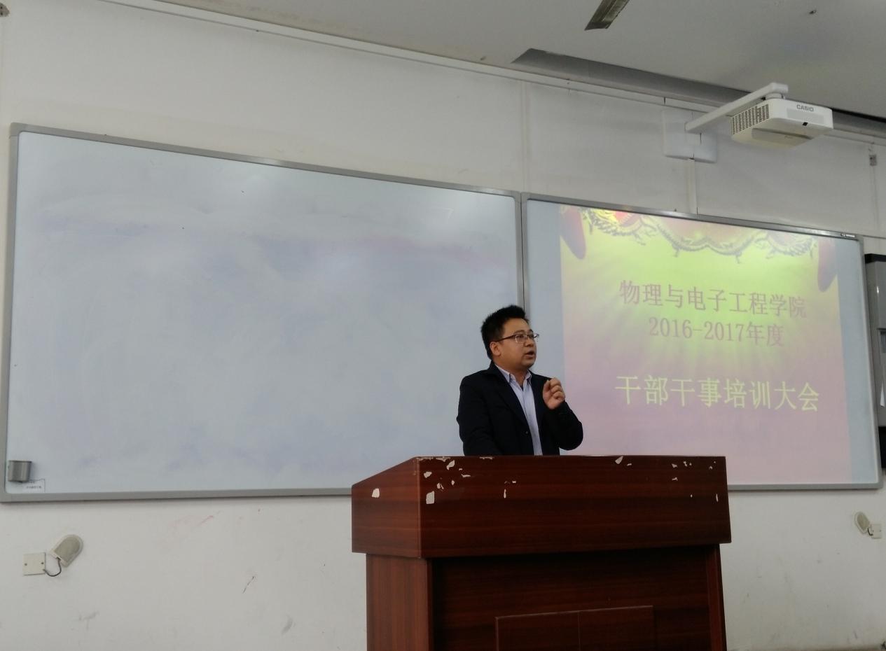 为形成良好的工作作风,加强学生工作理念,增强团队意识,提高学生干部各方面的能力,2016年11月18日中午1:00必一运动(官方网站)B·Sport-权威运动资讯网站在弘德楼15204举办了物电学院学生干部干事培训大会。物电学院党委副书记冉久飞、辅导员邓娜老师、余海蔚老师、陈禹辛老师出席本次大会,物电学院学工办主任李青松主持召开。