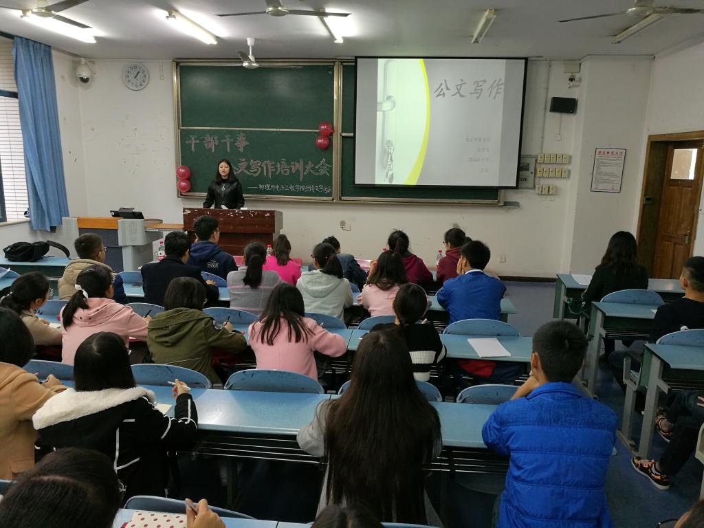 在王荣的耐心讲解下,培训逐渐步入尾声。干部干事公文写作培训大会不仅“授人以鱼”,更“授人以渔”,有效培训了同学们的公文写作能力,强调大学生应从多方面完善自我,也富于教育意义的传递出了大学生要适应时代发展自身的思想。