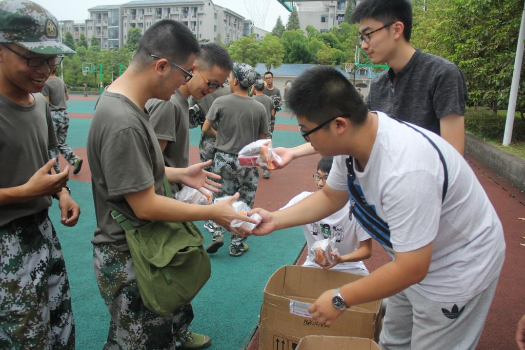 最后,老师们带领14级、15级的学生为新生们分发慰问品,并表示“军训辛苦了,继续坚持!”也希望新同学们能够带着满足的笑脸,带着老师们的热切希望,去走过大学里难忘的第一节课,去迎接未知的挑战!