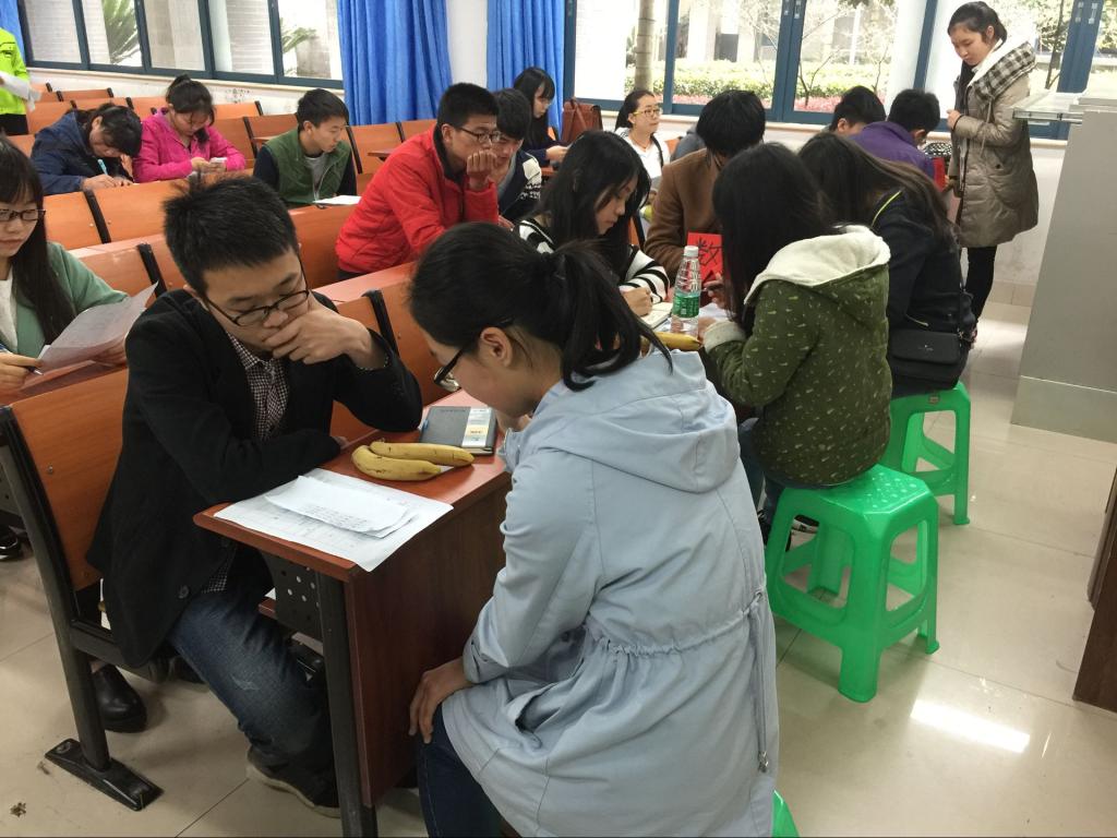 爱心家教招新总共分为两个过程——准备和面试。面试者首先需要在准备区填写个人信息,并思考面试时需要讲解的题目,然后按顺序有次序地进入面试区进行一对一面试。