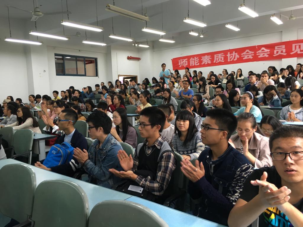 爱心家教、三笔字笔训、说课大赛、教具制作是众所周知的师能素质协会的特色活动。为了让协会会员更多的了解这个协会,知道这个协会的日常工作,了解它的活动安排,让会员放心的加入这个协会。2015年10月10日中午1:00,师能素质协会在弘德楼15102教室举办了会员见面大会。