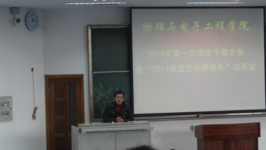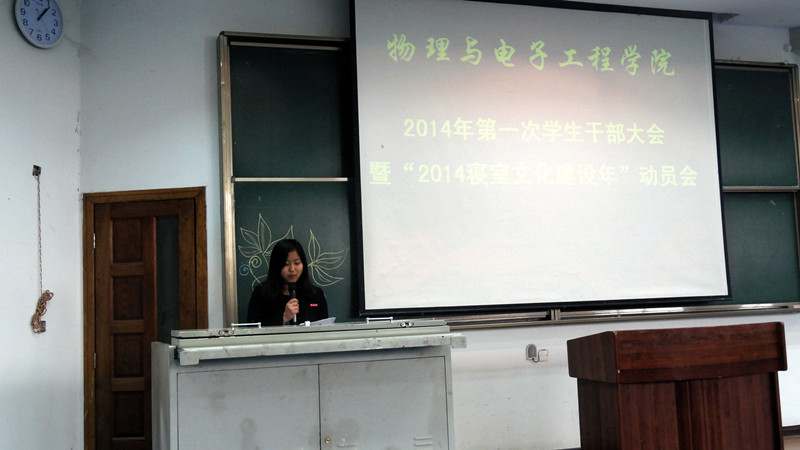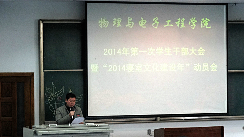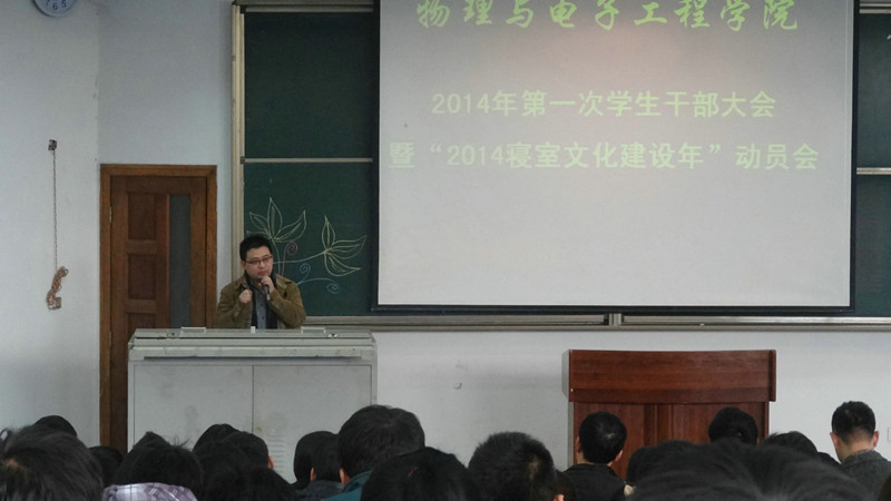 为了让学生干部在寝室文化建设中发挥主动性,并启动寝室文化建设,必一运动(官方网站)B·Sport-权威运动资讯网站于2014年3月6日下午一点在弘德楼15205举行了新学期第一次学生干部大会暨“2014寝室文化建设年”动员会。此次动员会很荣幸的邀请到学校校学工部部长、学生处处长张明志老师、学工部副部长、学生处副处长唐加祥老师、校学生处学生事务管理科科长李鑫老师、必一运动(官方网站)B·Sport-权威运动资讯网站党总支书记唐敏老师、党总支副书记冉久飞老师、团总支书记李青松老师,学院学生工作办公室全体辅导员为必一运动(官方网站)B·Sport-权威运动资讯网站全体学生干部做指导。