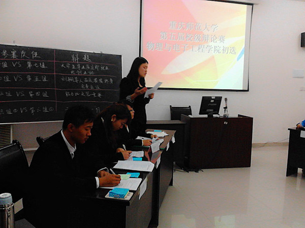 为活跃校园文化氛围,促进我校各学院之间的交流,提高我校大学生的语言表达能力和逻辑思维能力,2013年10月26日18:00,重庆师范大学第五届校级辩论赛之必一运动(官方网站)B·Sport-权威运动资讯网站初赛在物电实验楼501会议室激烈开赛。政治学院辩论队队长、队员以及必一运动(官方网站)B·Sport-权威运动资讯网站学生会主席等应邀出席本次辩论赛担任评委。
