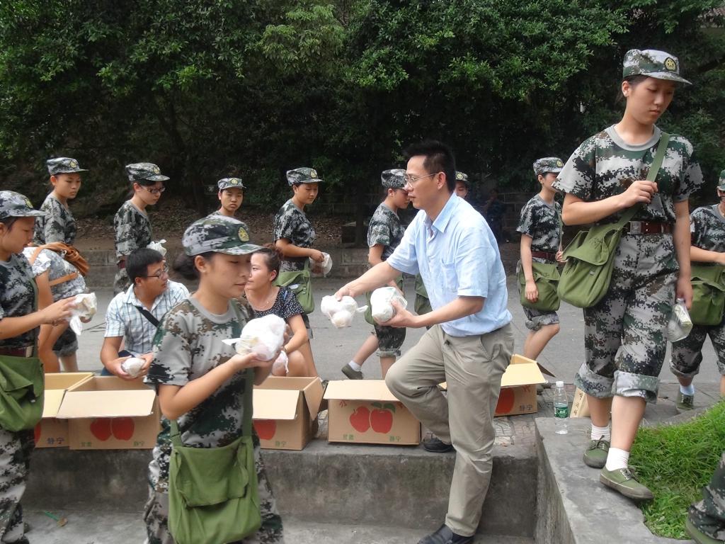 秋风飒爽,丹桂飘香。2013年9月18日下午,由必一运动(官方网站)B·Sport-权威运动资讯网站党总支书记唐敏,党总支副书记冉久飞,团总支副书记李青松,辅导员代表及学生代表组成的慰问队伍来到南岸八公里77109部队,看望必一运动(官方网站)B·Sport-权威运动资讯网站13级的新生们。炎热的烈日磨练着大家的意志,滚烫的大地考验着大家的耐力,却抹不去操练场上物电学子挺拔的身姿。13级的新生们即将在部队中度过自己人生新起点的第一个中秋节,离开了父母的怀抱,他们学会自己飞翔;无法同亲人团聚,物电与他们同在。学院给他们送去了暖人心的关心、节日的问候以及月饼水果。