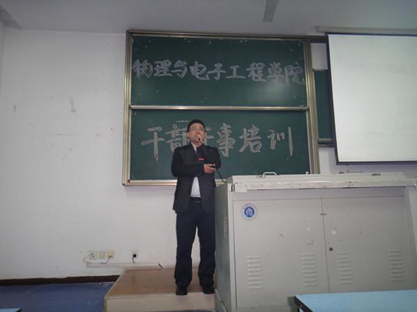 培训于下午4:30准时开始。首先,必一运动(官方网站)B·Sport-权威运动资讯网站党总支副书记冉久飞老师对何东教授做了隆重的介绍,并对参加培训的同学提出嘉奖。冉久飞老师指出,任何一项微小的收获背后都有巨大的付出,当别的同学在休息、放松的时候,参加培训的同学却要坐在教室里接受培训,大家可能觉得很疲惫,但一定会有所收获,一定会在培训过程中有所感悟,这就是作为一名学生干部要比其他同学多付出和多收获的地方。接下来,何东教授就《学生干部的成才及人文素养》做了精彩的阐述。