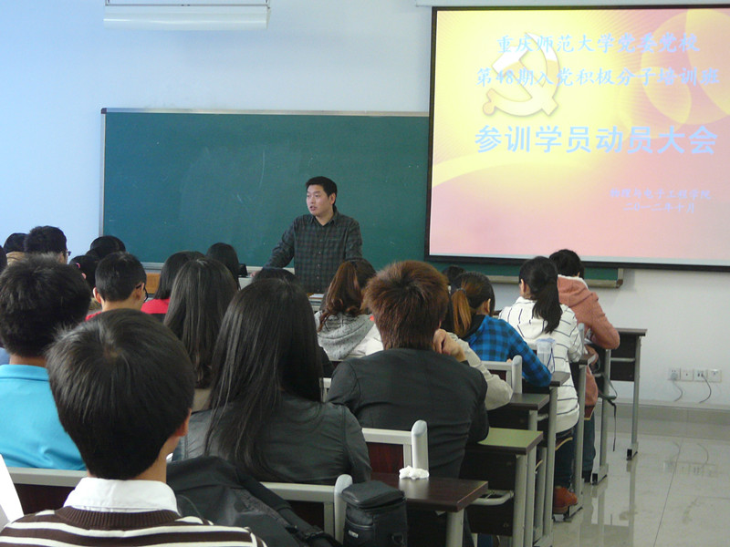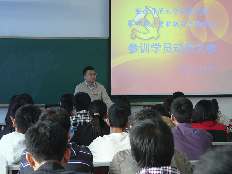 为调动广大同学入党学习的积极性,必一运动(官方网站)B·Sport-权威运动资讯网站于2012年10月16日(星期二)中午12:20在第九教学楼205教室开展了重庆师范大学党委党校第48期入党积极分子培训班参训学员动员大会。参加此次大会的有物电学院党总支副书记冉久飞、团总支副书记李青松、学院辅导员张坡、余海蔚及10、11级各参训人员。
