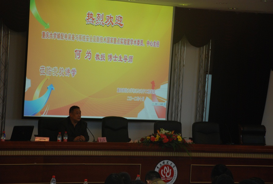 在这次专题讲座上,何为教授在同学们热烈的掌声中不仅围绕“电工新技术发展及其应用”这个主题深入浅出,循序渐进,用朴实简单的语言将深奥的电学知识传授给在场的每位同学,还以自己身边的实例来告诫同学们现在就业形势严峻,应认真学习电学知识,最好能够多做电学实验积累经验。场内气氛肃穆安静,大家都聚精会神地听着并记载何教授的忠告和意见。最后,何教授还细心地为现场有疑问的同学解答困惑。