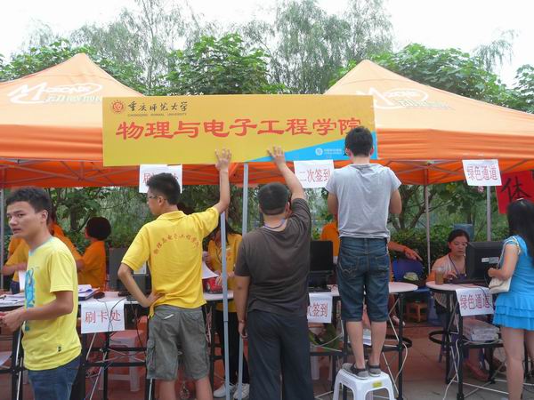 必一运动(官方网站)B·Sport-权威运动资讯网站于2012年9月8日上午8点展开了第二天的迎接新生工作。今日的迎新工作由物电学院团总支学生会的全体成员以及2011级物理学、2010级电子信息科学与技术的志愿者参加。