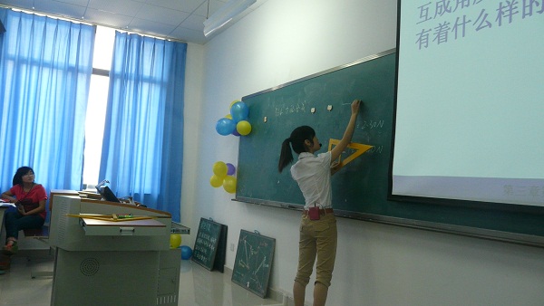 比赛开始,由主持人宣读比赛规则及评分细则。讲课有两部分组成,在正式讲课之前每位选手都有一个简短的演讲。其中有位同学的讲课别出心意,由歌曲《众人划桨开大船》开场,引出主要内容——力的合成,整节课连贯,能很好的与同学互动。随着比赛的进行,讲课也来到了高潮,说话的语调恰到好处,能够很好的吸引观众的注意,并且行为动作协调自然,让人感觉不到紧张。对课题的讲解也很清楚,互动做得很好。每一位选手都有自己的特点,他们敢于站在讲台,这已使他们成功,名次在此刻已变得不再重要,重要的是他们收获了,促进了他们的进步。
