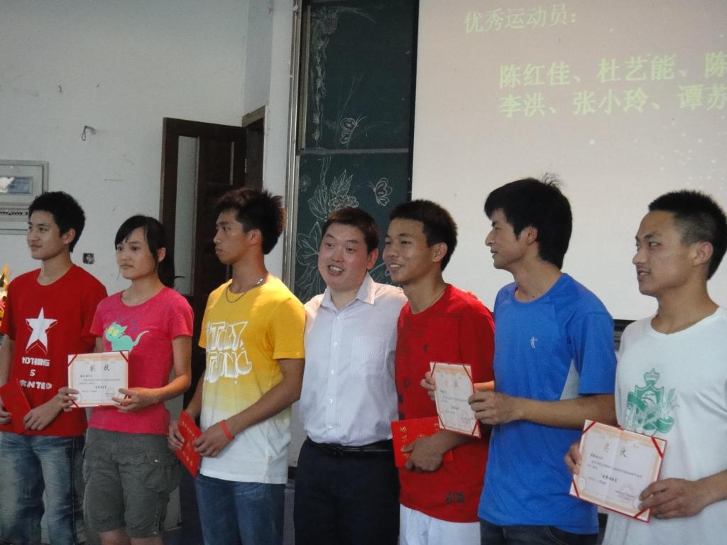 在这次表彰大会中,同学们在李老师的带领下再次回顾了运动会上的精彩瞬间和感人场面,无数感动的眼泪已经噙满同学们的双眼欲夺眶而出。然后体育部部长谭洋在热烈的掌声中发表了他的精彩讲话,在他的号召下同学们再次激动地喊出了当时震惊在体育田径场上的口号“青春如火,超越自我,激情物电,超越极限”。同学们众志成城的起誓到下一次田径运动会大家必将携手共进再创辉煌。然后,男子代表陆海锋和女子代表黄颖及志愿者代表黄夏婷分别对这次运动会发表了自己的演讲,分享了他们关于运动会的感想与收获。最后,崔院长就此次运动会进行了表彰决定,其中包括“优秀志愿者在”32名,“优秀运动员”6名, “最佳运动员”2名和“突出贡献奖”一名,分别由辅导员张坡、团支部副书记李青松、党支部副书记冉久飞和副院长崔玉亭为他们颁奖。