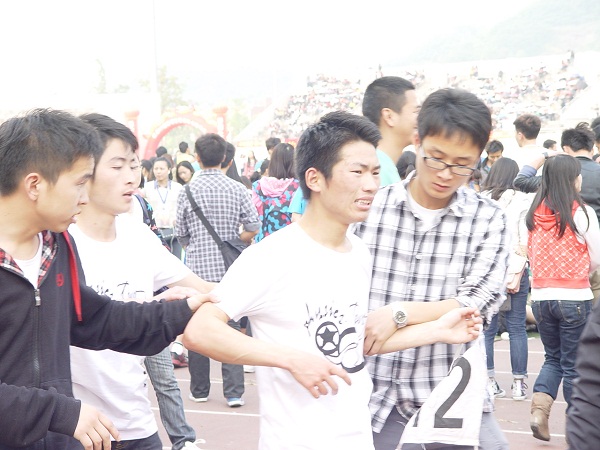 12日下午因为天气原因暂停了运动会,却暂停不了大家的热情。18日下午一点,物电学院的看台上早早的坐满了人,等待着奇迹的发生,力量的冲刺。在操场上,即将比赛的运动员们也精神抖擞,从容自得,为比赛服务的志愿者东奔西走,忙得不亦乐乎。