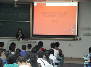 这次的部门介绍大会是由团总支·学生会学生书记李佩主持。首先是由她发言,大致地介绍了团总支·学生会整体情况,机构设置等,然后分别由个部门代表介绍自己部门的特色和职务,2011级的同学们都十分专注地倾听学长学姐介绍情况,各部门代表感觉到的更多是2011级同学们的热情,害怕自己带紧张介绍不周全,会让新同学们不理解,影响招新工作的顺利开展。伴随着这次大会的深入开展,气氛由严肃转向了愉悦。到了自己感兴趣的部门,同学们就踊跃地向各代表提问,一问一答甚是活跃。