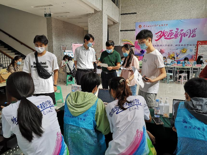 白底蓝字的院服俯首工作,火红色的马甲来回穿梭,一张张热情的笑脸,一项项贴心的服务,迎接着来自四面八方的莘莘学子。至此,2022年物电学院迎新工作在全体工作人员的配合下顺利完成。