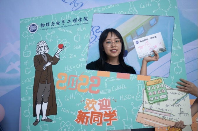在学院迎新点处,设置有特色迎新活动《相约物电·初印象》明信片合影墙。新生可以在明信片上书写对自己的期望、对大学生活的憧憬,在合影墙前用镜头记录下他们与物电学院的第一次合影,活动拉近学院与新生们的距离,深受新生喜爱!