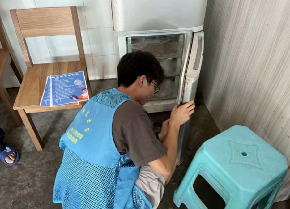为村民们做好用电宣传的同时,成员们将自身所学的专业电子知识付诸于实践,学以致用,免费为村民们清洗电器、维修电器、检修电路。空调风扇是炎炎夏季的常用电器,而定期清理电器设备灰尘和维护电器设备机身干净也同样是人们容易忽略的用电安全隐患。