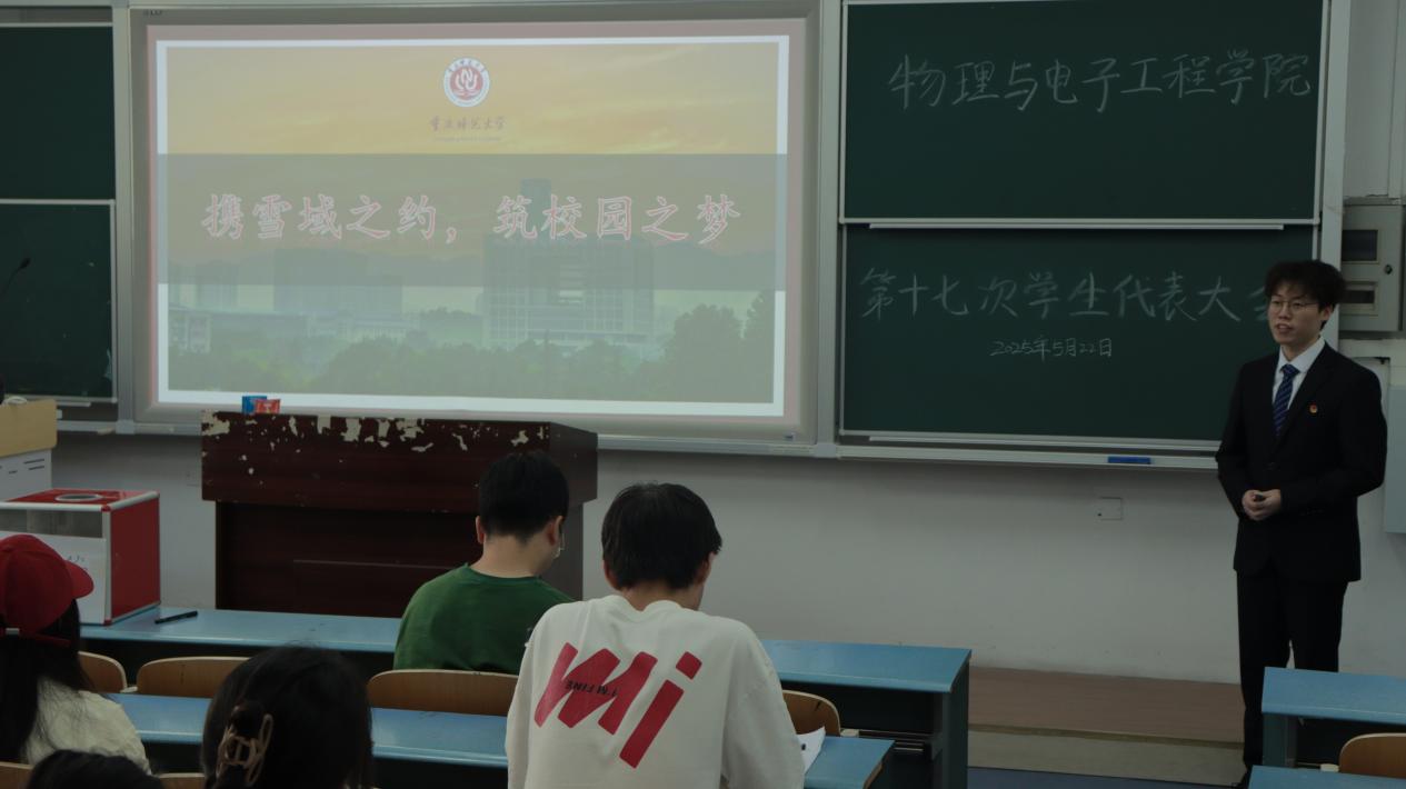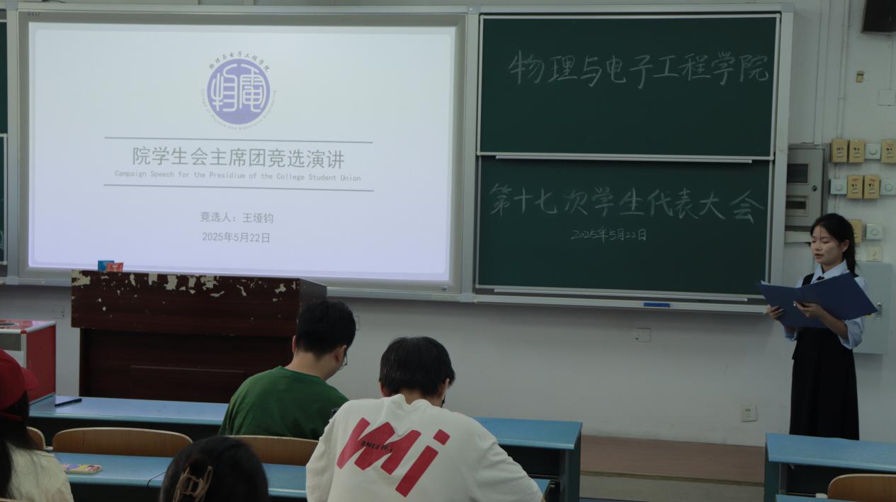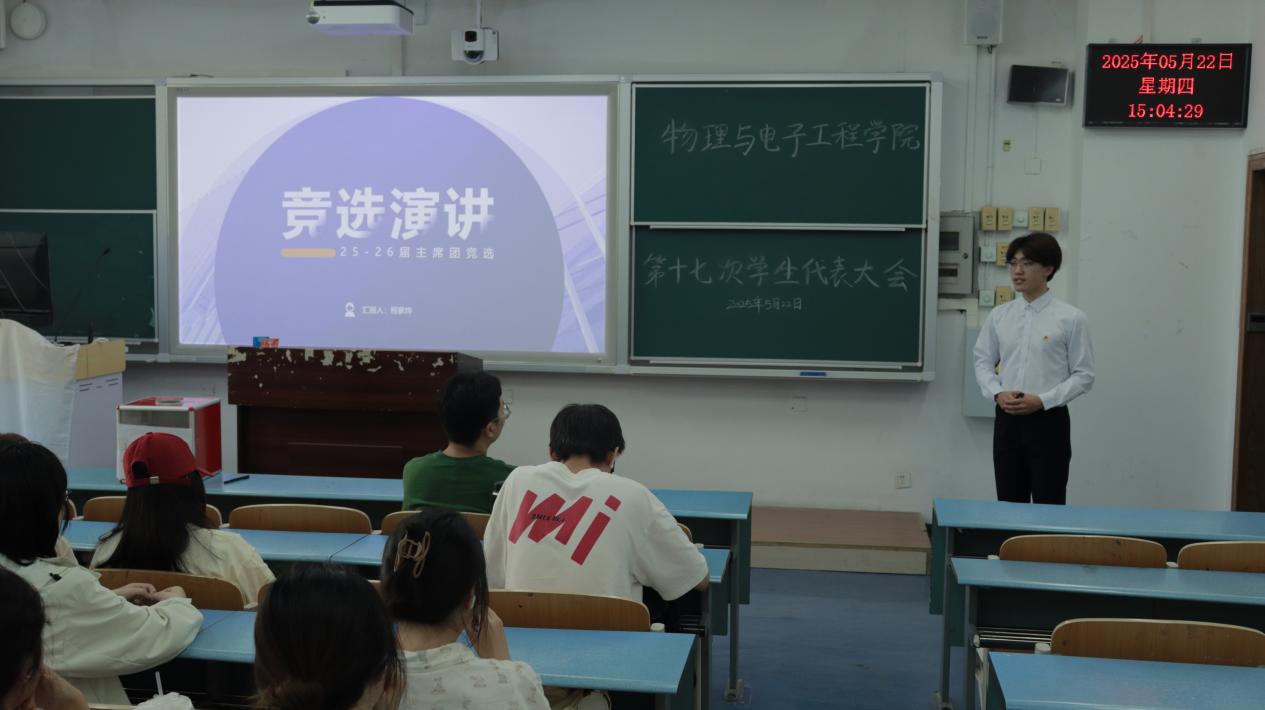 为加强学生骨干培养,团结带领全院青年学子砥砺奋进,2025年5月22日下午,必一运动(官方网站)B·Sport-权威运动资讯网站在弘德楼召开第十七次学生代表大会暨2025-2026学年分团委·学生会主席团候选人竞选大会。本次竞选共有4名候选人,全院各年级、各专业70名学生代表参会,辅导员马梓茂老师作为嘉宾出席。