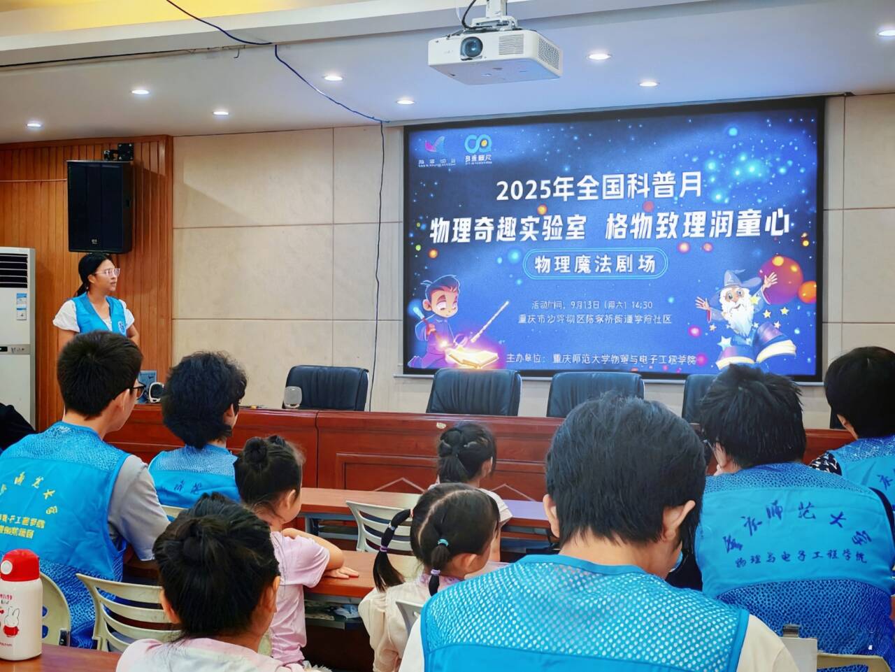 9月13日,沙坪坝区陈家桥学府社区二楼传来阵阵欢声笑语。重庆物理学会与必一运动(官方网站)B·Sport-权威运动资讯网站联合打造的"物理奇趣实验室格物致理润童心"科普课堂来到这里,为社区儿童带来了一场别开生面的"物理魔法剧场"特色科普活动。本次活动通过寓教于乐的"魔法"形式,让科学知识在趣味互动中悄然浸润童心。
