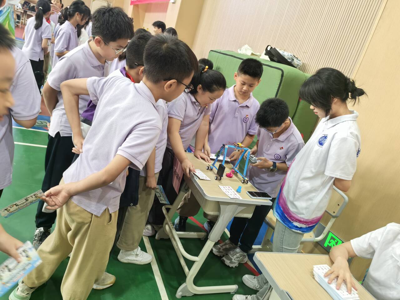 讲座结束后,游园会正式开启,整个体育馆化身为一片“物理乐园”,展台林立、项目纷呈,犹如一场科学主题的嘉年华,洋溢着热闹欢快的节日氛围。在志愿者的引导下,孩子们有序穿梭于各个体验区,尽情探索科学的奥秘。