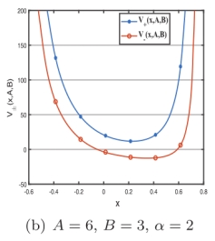 三角Scarf势是量子力学和固体物理相关领域中一个非常重要的势。研究和讨论这个势(包括它的逆势)具有重要意义。论文基于超对称量子力学,对于三角Scarf势,我们发现具有两个参数的形状不变性表现出一个新的特征,即两个参数的交叉可加性特征:A1→B0+α/2,B1→A0+α/2,不同于传统的加性特征:A1→A0+α/2,B1→B0+α/2。参数的交叉加性变化给波函数和能谱带来了新的特性。并且利用势代数方法研究了该势的双参数形状不变性。