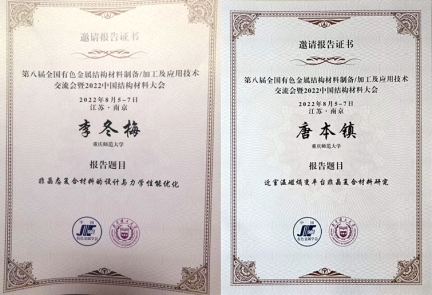 由必一运动(官方网站)B·Sport-权威运动资讯网站联合主办的“第八届全国有色金属结构材料制备加工及应用技术交流会暨2022中国结构材料大会”于2022年8月5-7日在江苏省南京市召开。余鹏教授为大会联合主席之一,李冬梅副教授为“非晶与高熵合金”分会主席之一。李冬梅副教授做了题目为‘非晶态复合材料的设计及性能优化’的特邀报告,唐本镇博士做了题目为‘近室温磁熵变平台非晶复合材料研究’的特邀报告。