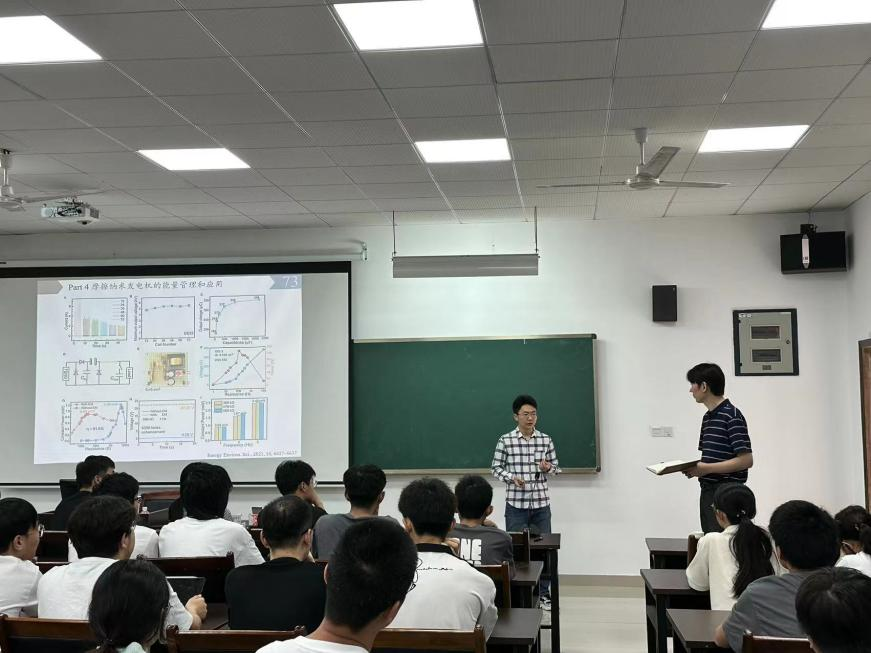 6月8日下午,重庆大学贺文聪博士应邀到必一运动(官方网站)B·Sport-权威运动资讯网站作学术交流,作了题为“摩擦纳米发电机的性能提升”的学术报告。必一运动(官方网站)B·Sport-权威运动资讯网站副院长余鹏(主持工作),相关研究方向的老师、研究生及本科生参与,学术报告由杨晓红教授主持。